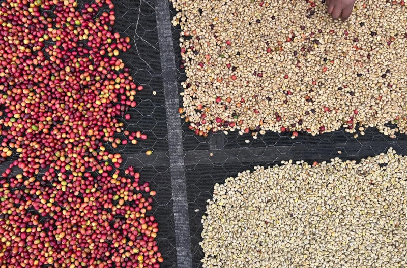 I frutti vengono raccolti con il metodo picking, quindi manualmente, selezionando solo le ciliegie mature al punto giusto. Dopo di che vengono lavorate con il metodo lavato, il quale conferisce una brillante acidità alla bevanda estratta.